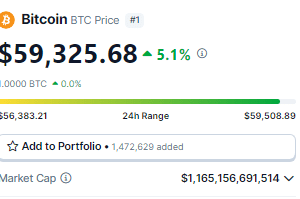 [ad_1] After rising 5% in the last day, Bitcoin (BTC) is now rapidly nearing the coveted $60,000 mark. This is because investor interest in the largest...
