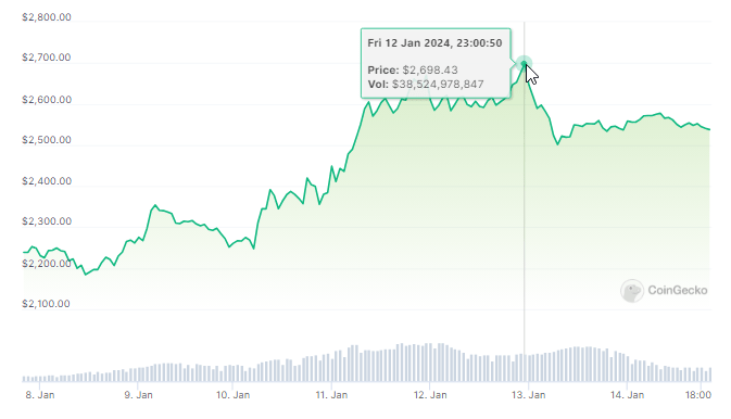 - Volume Spike: As Ethereum crossed $2,600, trading volume surged by 42%, indicating strong buying pressure and investor confidence.
